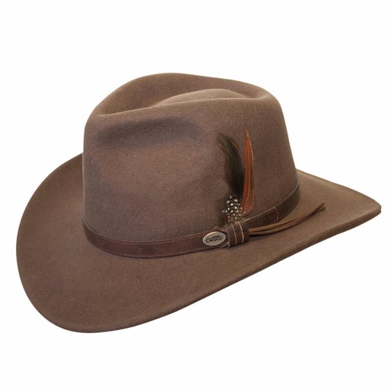 The Aussie Wool Crusher Hat is crafted from waterproof Australian wool, making it durable and ideal for any outdoor activity. This crushable hat brings function and style together, featuring a classic design that can easily be reshaped with steam if it ever gets packed for extended periods of time. Perfect for the outdoorsman. Easy for travel and looks like "The man from Snowy River".