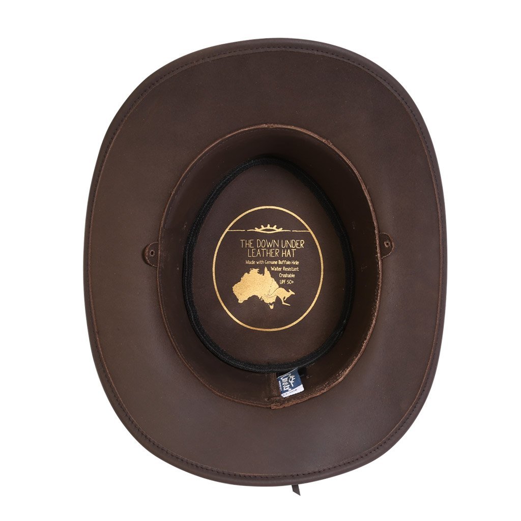 Stay dry and stylish in any weather with our Down Under Leather Hat! Crafted from ultra-durable buffalo leather, this hat offers superior waterproof protection and sun protection for your outdoor adventures. Conquer the elements in style!