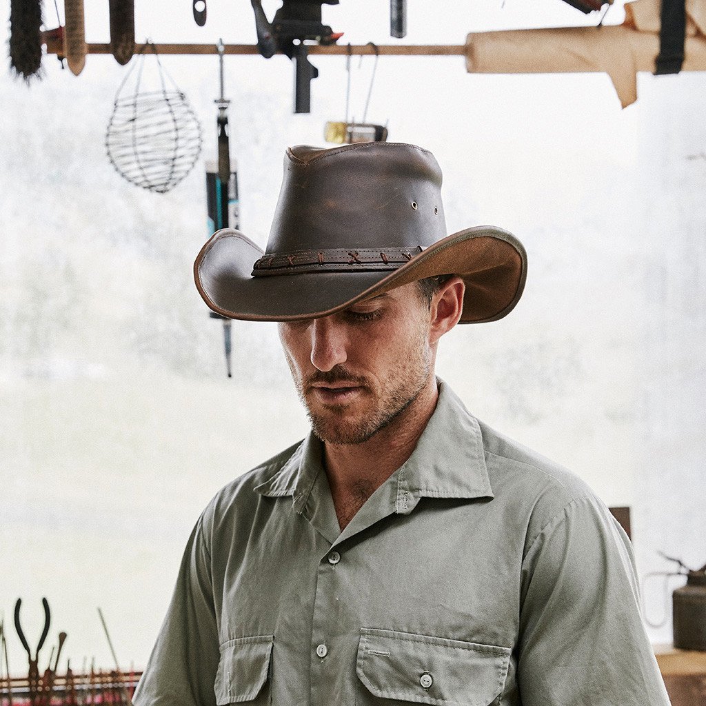 Trust High Sierra's Shapeable Leather Hat for weatherproof protection. Made with genuine leather and designed with a western-style shape, this hat provides excellent sun protection while keeping you comfortably dry in all conditions. This is a great cross over style, a little bit outback a little bit western.