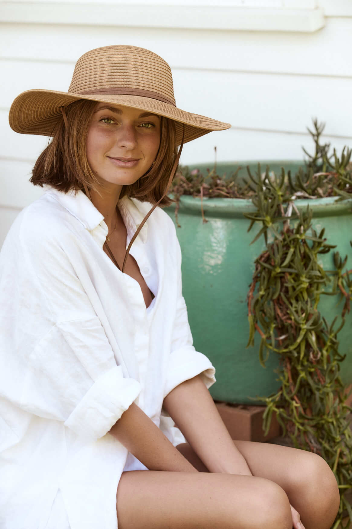 The McCloud Sun Protection Ladies Gardening Hat shields your face from the sun with a wide brim design. Made from straw, this lightweight hat provides durable sun protection for all your outdoor activities. Keep cool and comfortable during long days in the garden.
